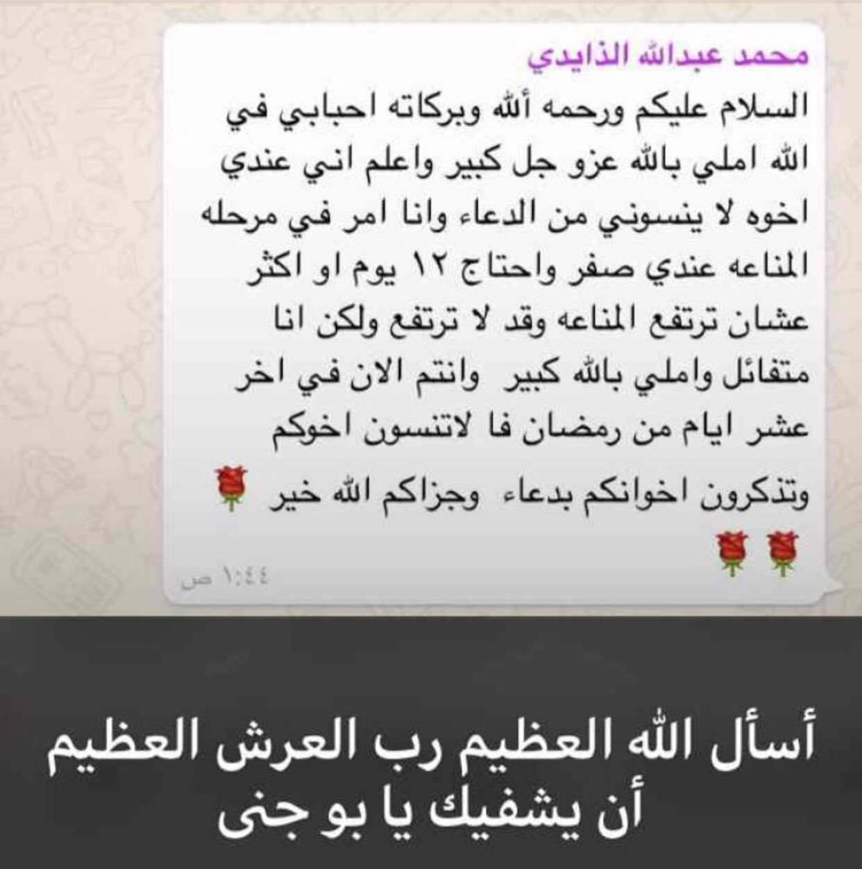 محمد عامج العنزي On Twitter اسأل الله العظيم رب العرش العظيم ان يشفيك يا اخوي ابو جنى لا تنسونه من دعائكم في هذه الايام