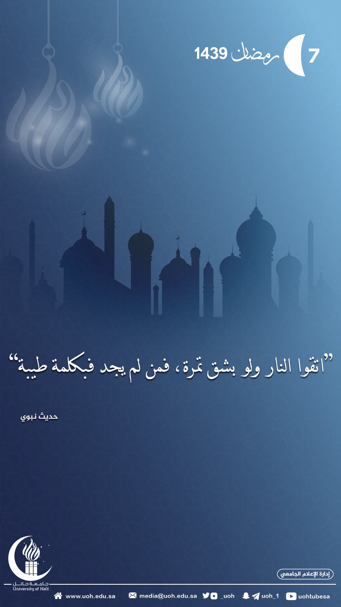 جامعة حائل En Twitter رمضان اتقوا النار ولو بشق تمرة فمن لم يجد فبكلمة طيبة Ramadan جامعة حائل