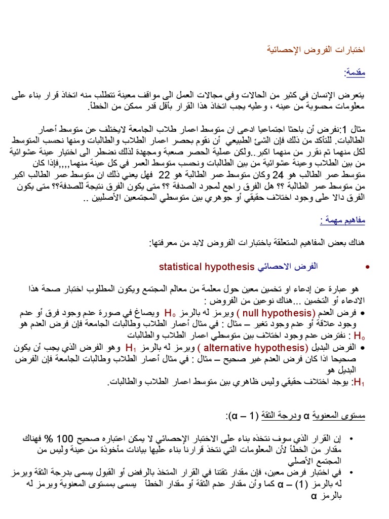 اختبارات الفروض الاحصائية موقع مكتبتك