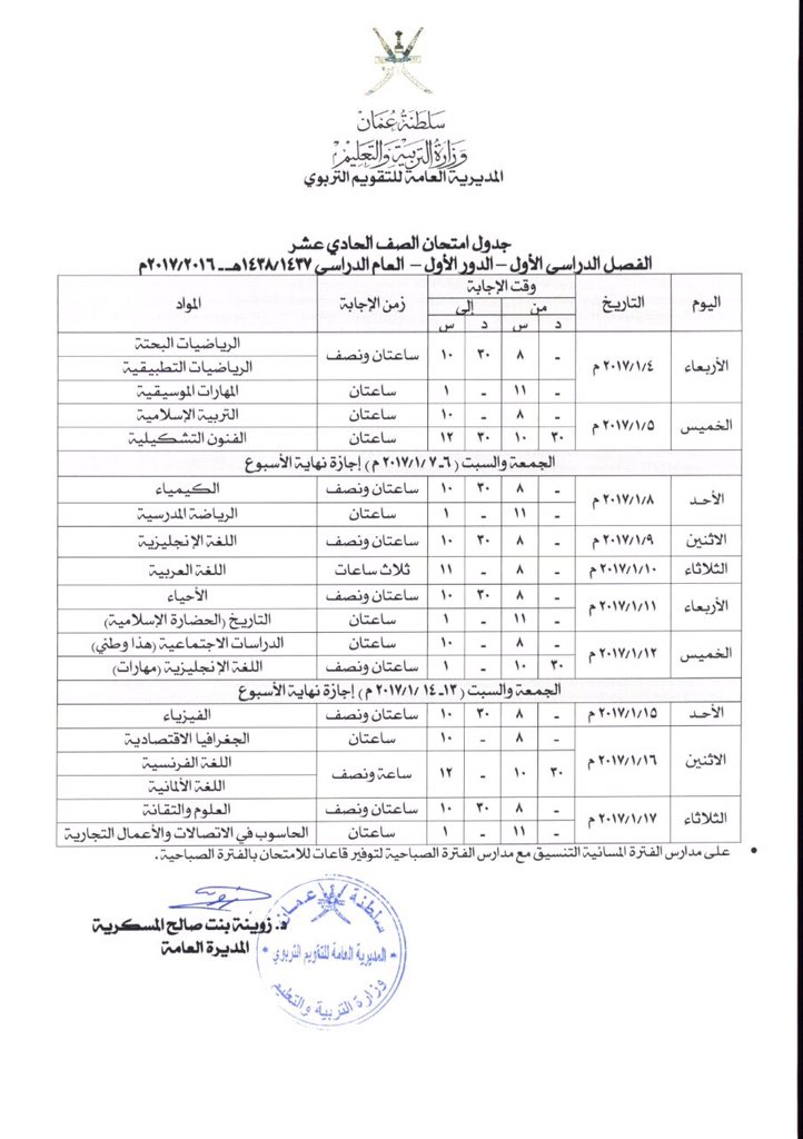 مدونة تعلم جدول اختبارات الفصل الدراسي الاول للصف الحادي عشر2017 2018