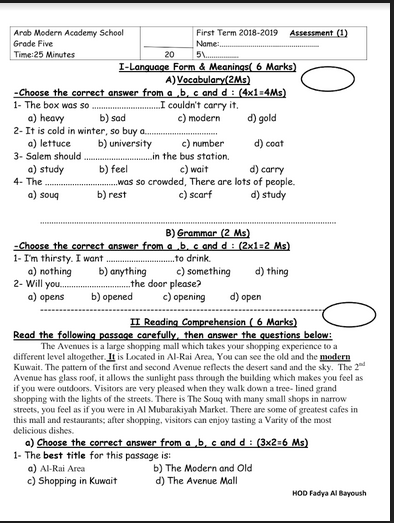 امتحان وزاري انجليزي للصف الخامس مدرسة نشأت ابو جبارة الاساسية Facebook