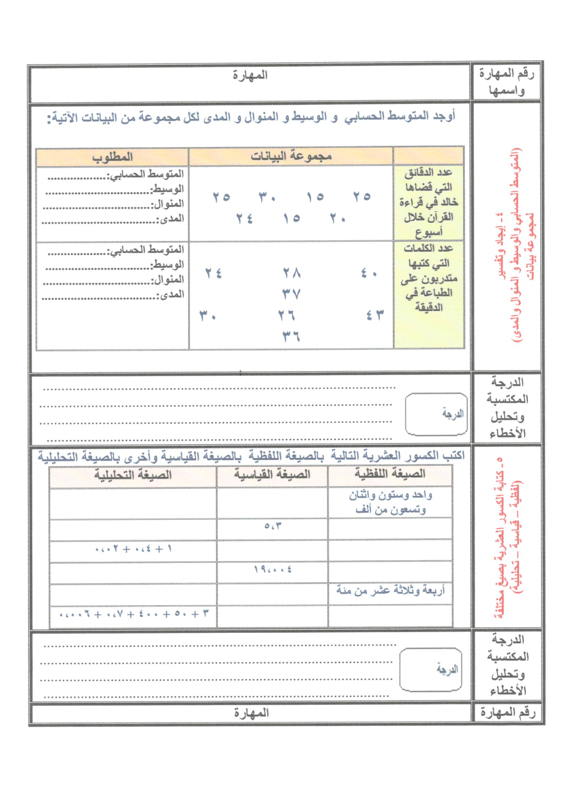 نموذج Word اختبار تشخيصي لمادة الرياضيات للصف الخامس منتديات صقر الجنوب