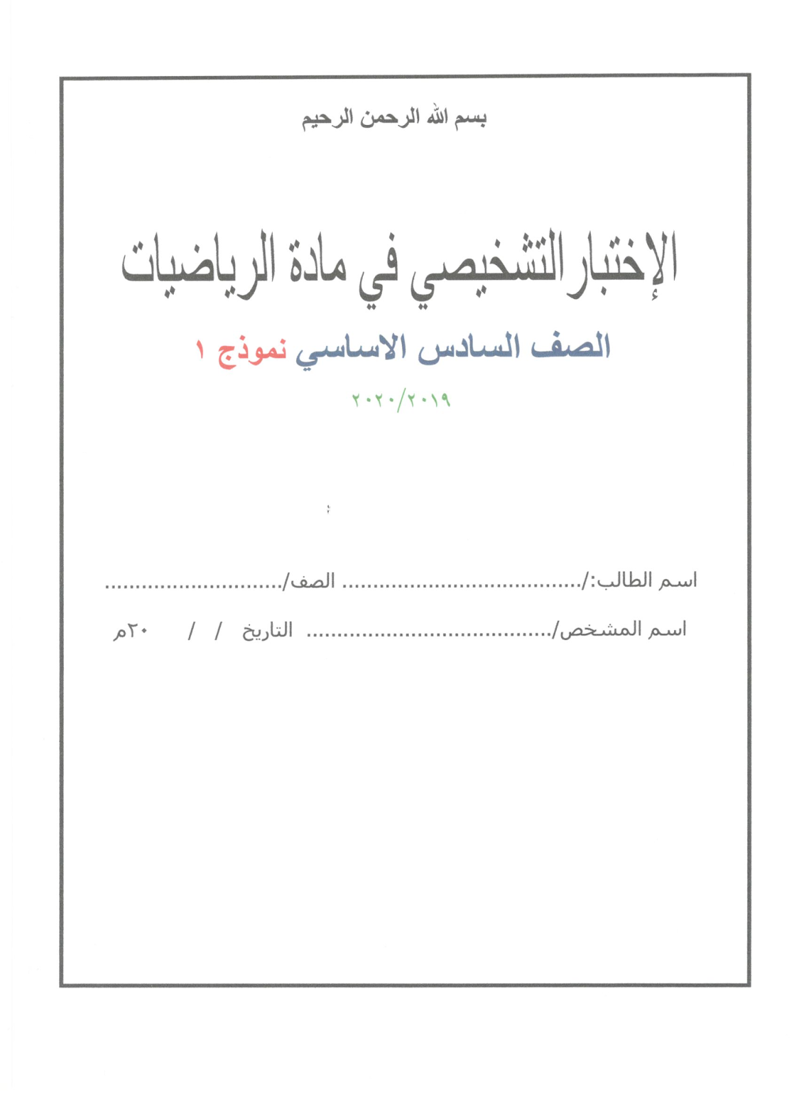 اختبار تشخيصي للصف السادس رياضيات