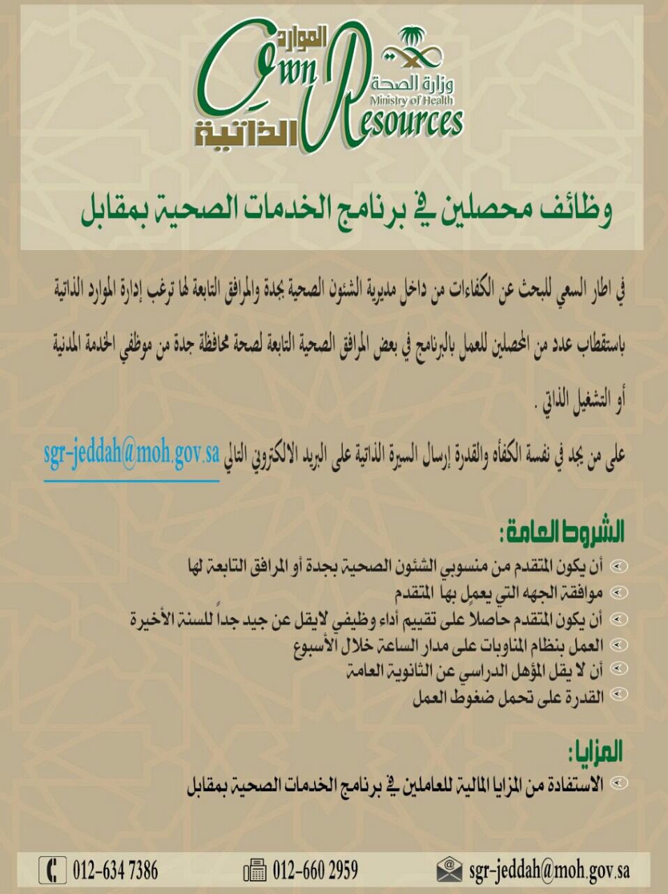 مـ نـ سـ و بـ ي و ز ا ر ة ا لـ صـ حـ ـة Na Twitteru وظائف محصلين في برنامج الخدمات الصحية بمقابل الموارد الذاتية Https T Co Uzk3okw1ea Via Altowaireb