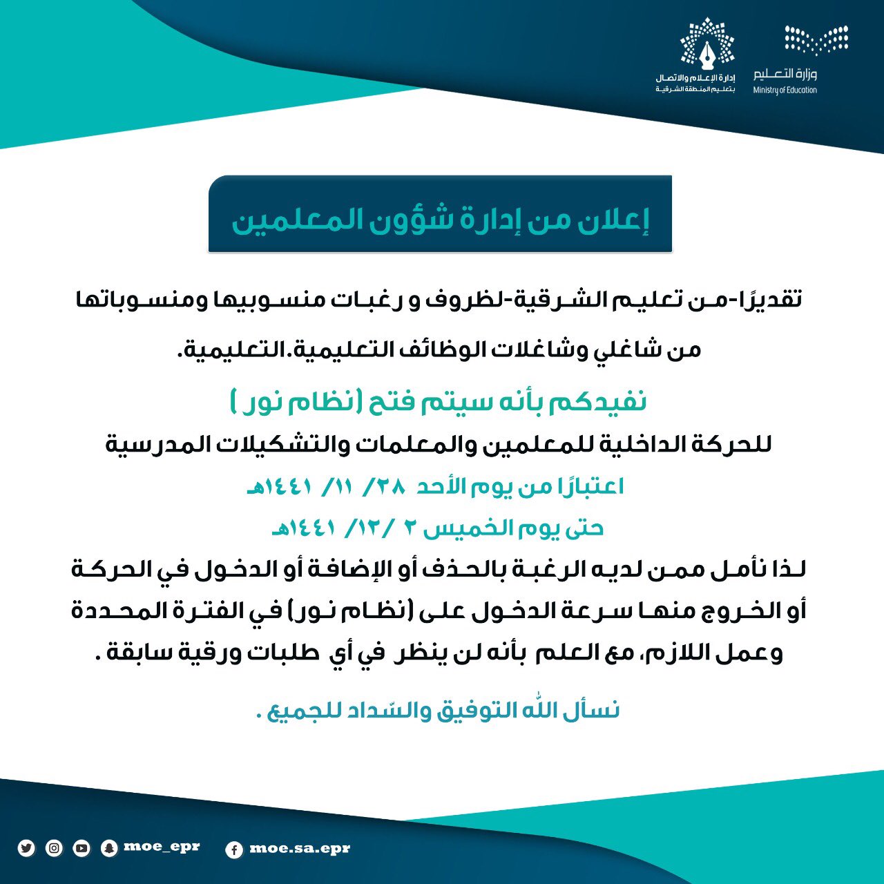إدارة تعليم الشرقية On Twitter المعلمون و المعلمات الجدد من لديه استفسار عن أية معلومات تتعلق بتسجيل الرغبات أو وجد صعوبة في الدخول على نظام نور ماعليه إلا التواصل مع مدير