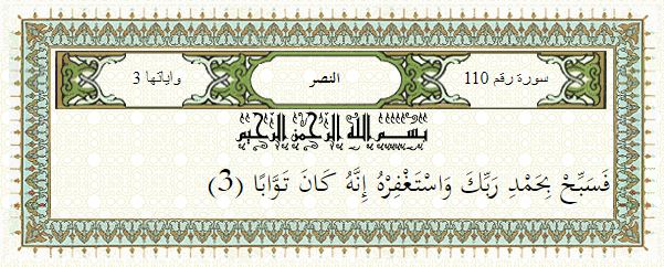 اذا جاء نصر الله والفتح ورايت الناس يدخلون في دين الله افواجا فسبح بحمد ربك واستغفره انه كان توابا