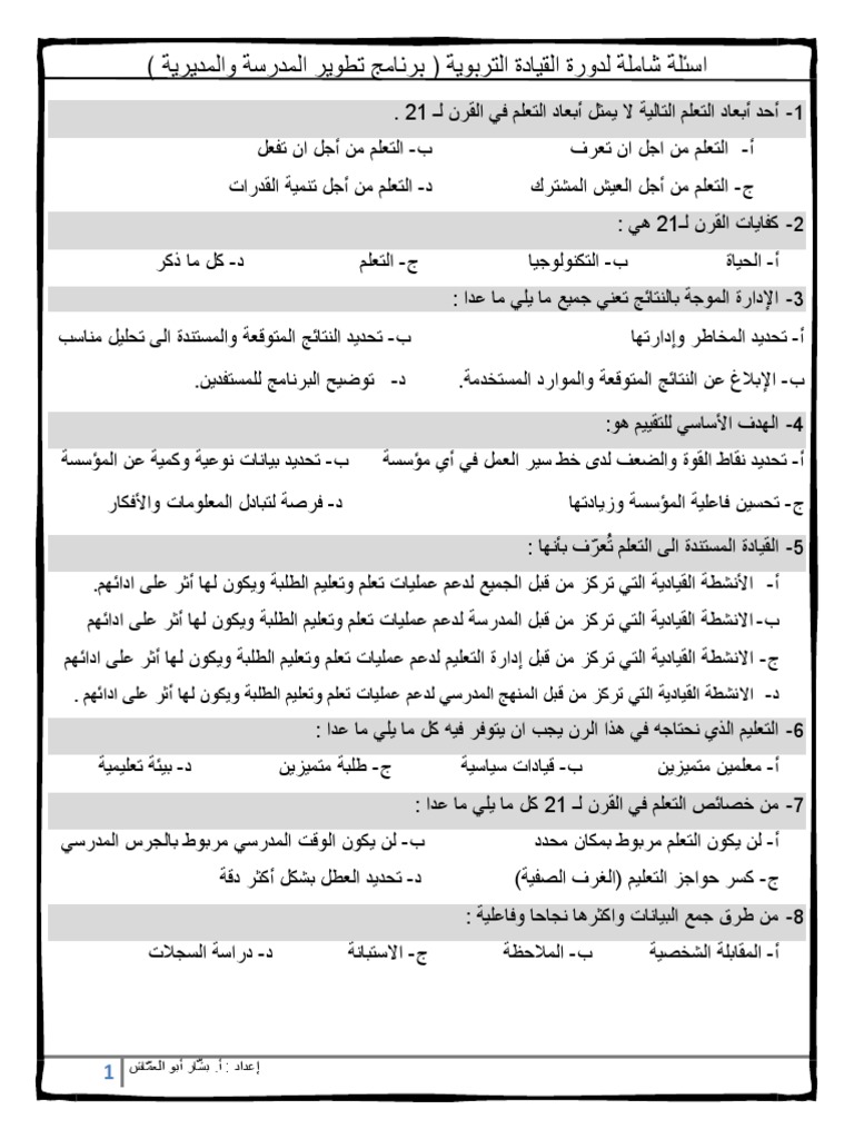 الاسئلة المرشحة إلى المتقدمين للإشراف التربوي الاداري 2017 2018 منتديات درر العراق