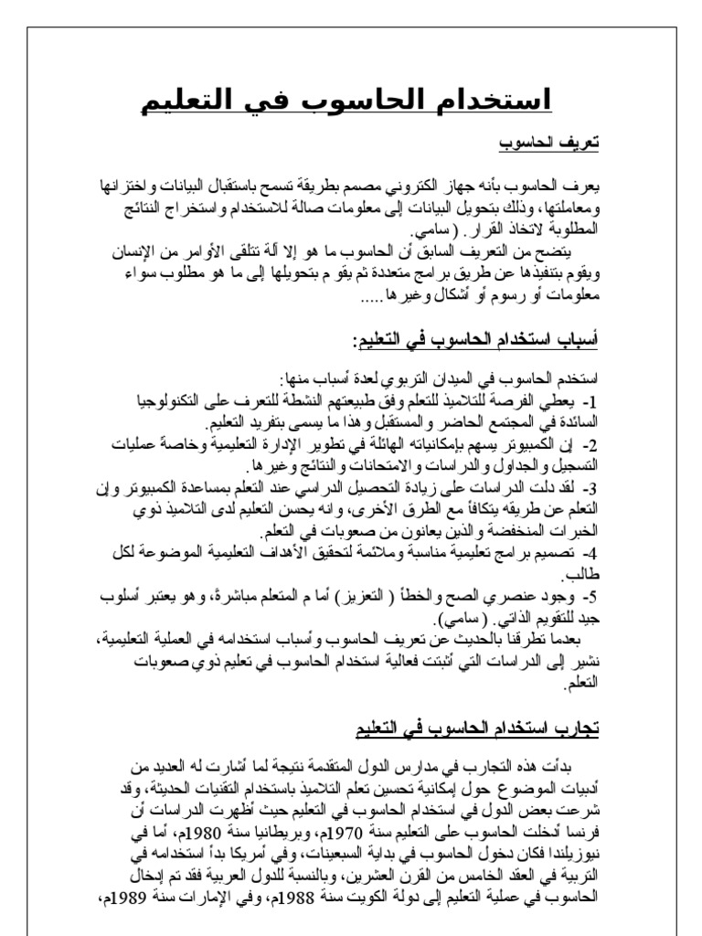 استخدام الحاسوب في التعليم Doc
