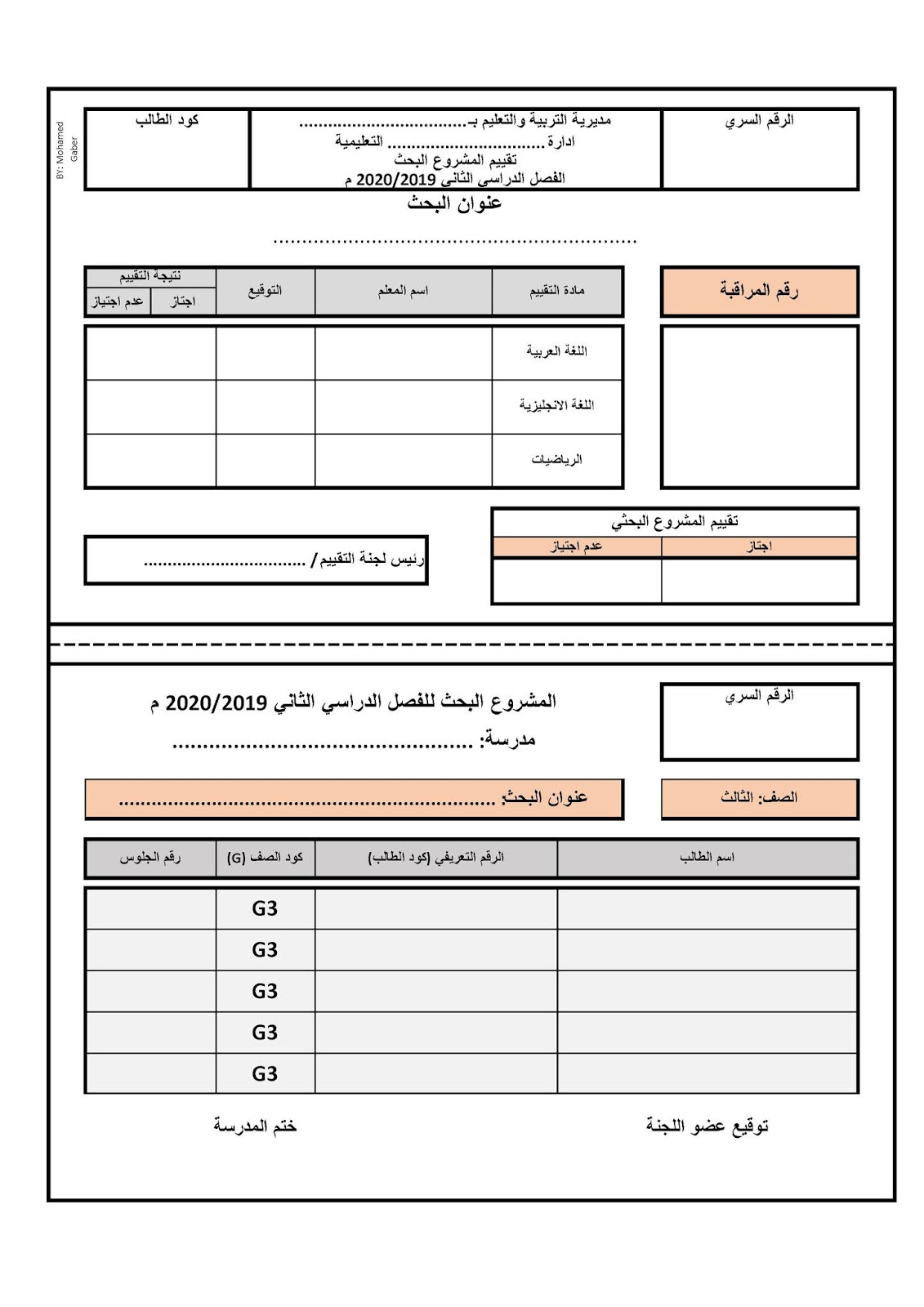 استمارة تقييم المشروع البحثي الفصل الدراسى الثانى 2020