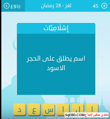 حل لغز اسم يطلق علي الحجر الاسود 28 رمضان من لعبة رشفة رمضانية صقور الإبدآع