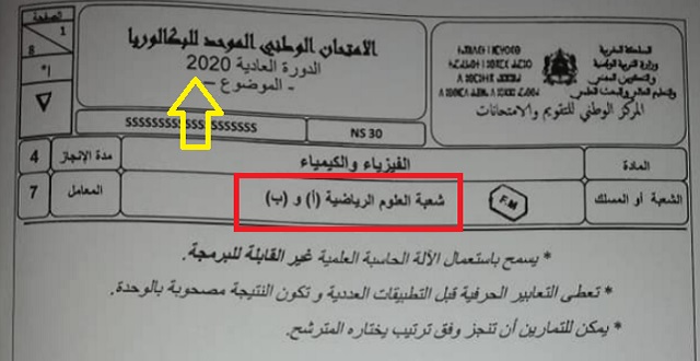 الامتحان الوطني 2020 مادة الفيزياء علوم رياضية