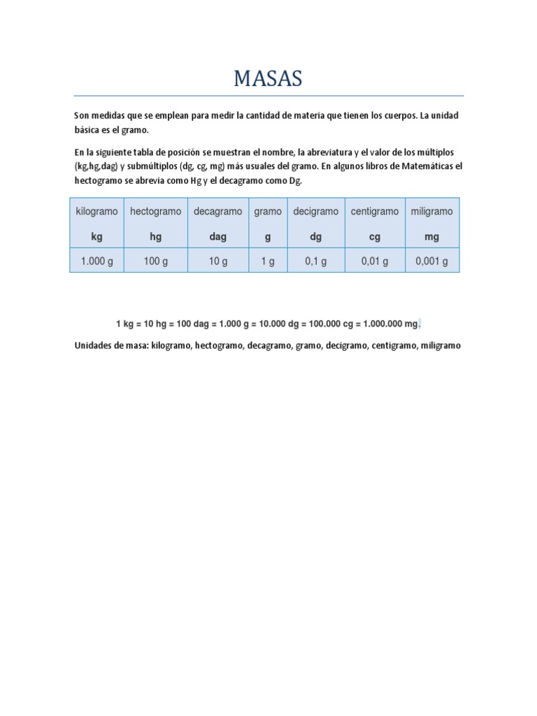 Tabla De Kg Hg Dag G Dg Cg Mg