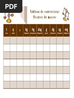 Tableau De Kg Hg Dag G Dg Cg Mg