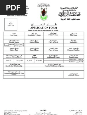 Application Form For Umm Al Qur Aa University In Makkah Ksa Saudi Arabia