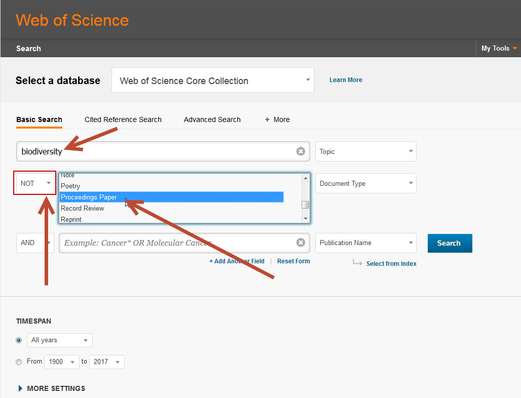 Web Of Science Usage Of Boolean Operator Not
