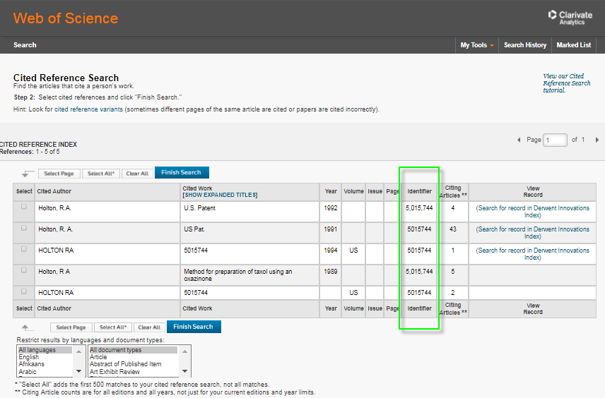 Web Of Science Cited Reference Search For Patents