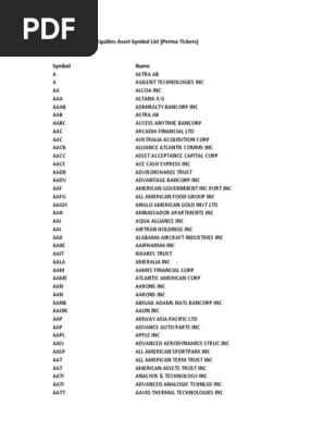 Quantconnect Us Equities Asset List Xlsx Corporate Law Service Companies